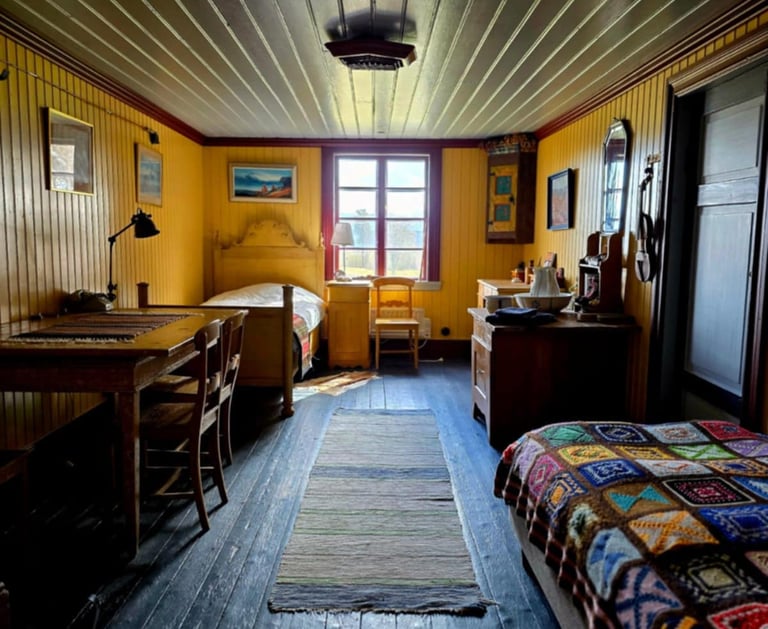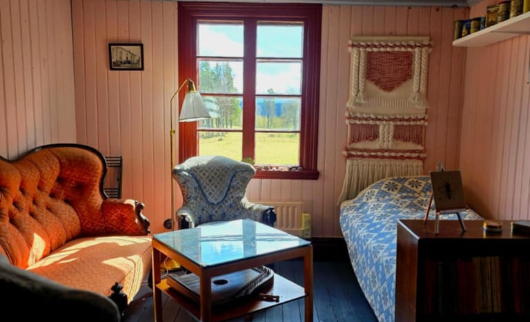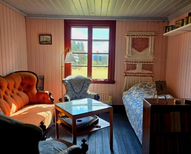 A cosy accommodation for pilgrims along the St Olav’s Way, with authentic 19th-century style and personal service. We offer five comfortable beds in three rooms. For larger groups, additional sleeping arrangements can be made in cabins and glamping tents. We offer several bathrooms located in a separate building.